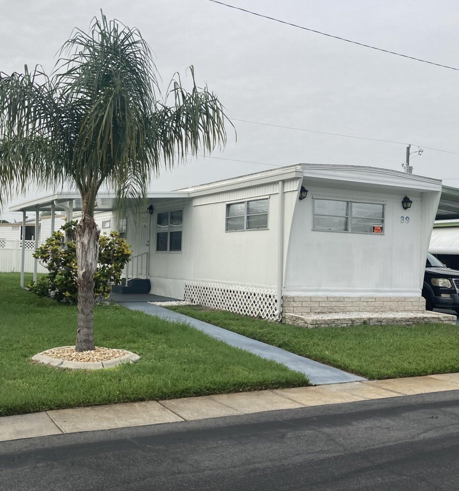 Lot 54 $177,900 PENDING PENDING LOT 54 PRICE: $169,000 YEAR: 1969 SIZE: 24’x44’ (1056 sq ft) plus Florida Room (240 sq ft) BEDROOMS: 2 BATHROOMS: 1 3/4 FURNISHED: Master: Bed, dresser, chest of drawers, nightstand. Guest: Bed, Dresser, chest of drawers, nightstand and wall mirror. 9/2021 New 3 ton Rheem Heating/AC straight Cool unit with all new duct work. Unit has a 10 year transferable warranty. 2017 AMS Weather Lok roof “roof over” over the home and FL room. It has a lifetime limited warranty which may be transferable (at companies option). Mobile home tie downs installed to Mobile Home stabilize and protect your home during storms. Homeguard termite inspected annually since 2018. Most recent inspection 1/2025 found no activity. Newer Counter tops in kitchen and bathrooms. Newer flooring. Move in ready. Bathrooms: towels, linens, wicker stand over toilet. LR: Both couches, 2 end tables, 2 lamps, and TV. Kitchen: Dishes, pots/pans, silverware, glassware, baking sheets, coffee pot, microwave and all appliances. Dining table and 6 chairs. Florida room: wicker furniture, hutch, coffee table and end table. Washer/Dryer and misc. tools. All window treatments, including nice faux wood blinds and most wall décor.